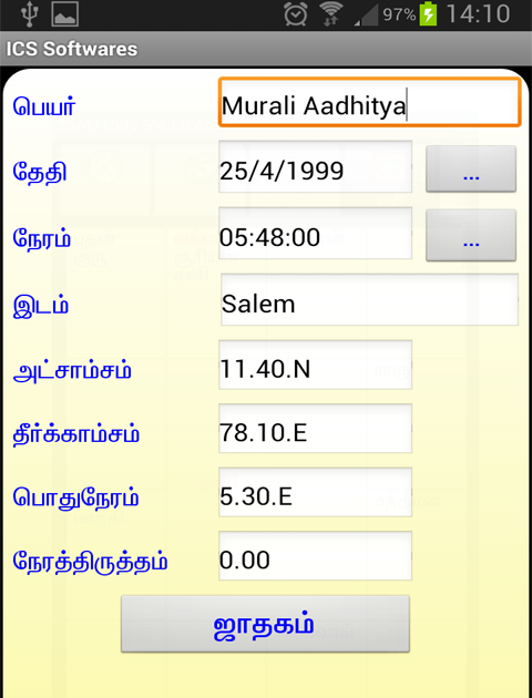 Generate birth horoscope,tamil jathagam, tamil birth jathakam, south and north indian style ...