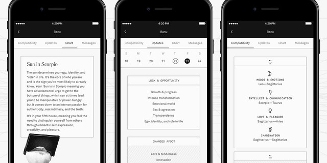 Why are millennials so into astrology and personality types? Millennials are becoming more introspective in an attempt to make sense of the world around them. Personality indicators such as the Myer-Briggs and Enneagram provide insight on one's character and behavior, including what types of careers, relationships, and habits would best be suited to each type. Which dating app should you use? This guide can help you ... - Mashable WebAug 24, 2022 · This is the go-to app for millennials to find a date that is way more thoughtful (and way less vulgar) than Tinder. ... The dating world simply needed an astrology app that looks past sun sign ... Why are Millennial so into Astrology? Millennials and Astrology . In a lot of way, millennials rely on memes to survive day to day life and astrology is no stranger to memes. In fact, millennials have turned astrology into a meme hence making it popular amongst the masses. People categorize the signs as anything they want. Whether that is a type of food, a feeling, an animal ...