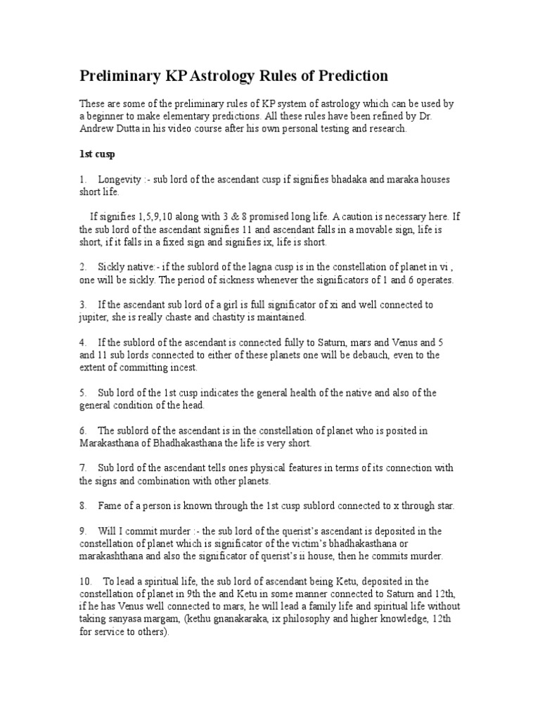 Astrology - Fala Jyotish: KP Rules - Blogger KP Rules. Longevity and Good Health : If lagna and lagna lord are in the star and sub of lords other than 6,8,12, native will live long maintaining good health. Marriage: Sub of 7th signifies 2/7/11. Spouse from Nearby place : When sub of 7th H signifies 4th or 10th House. Troubled marriage, separation and divorce: If the sub of 7th signifies 1 ... What Is KP Astrology, and what is difference in Vedic and KP ... - Quora Answer (1 of 10): What is KP astrology? KP astrology is essentially the investigation of Stellar Astrology in which we study Nakshatras or Stars and dependent on these boundaries, foresee an occasion in one's life. There are various sorts of Astrology characterized around the world. KP framewor...