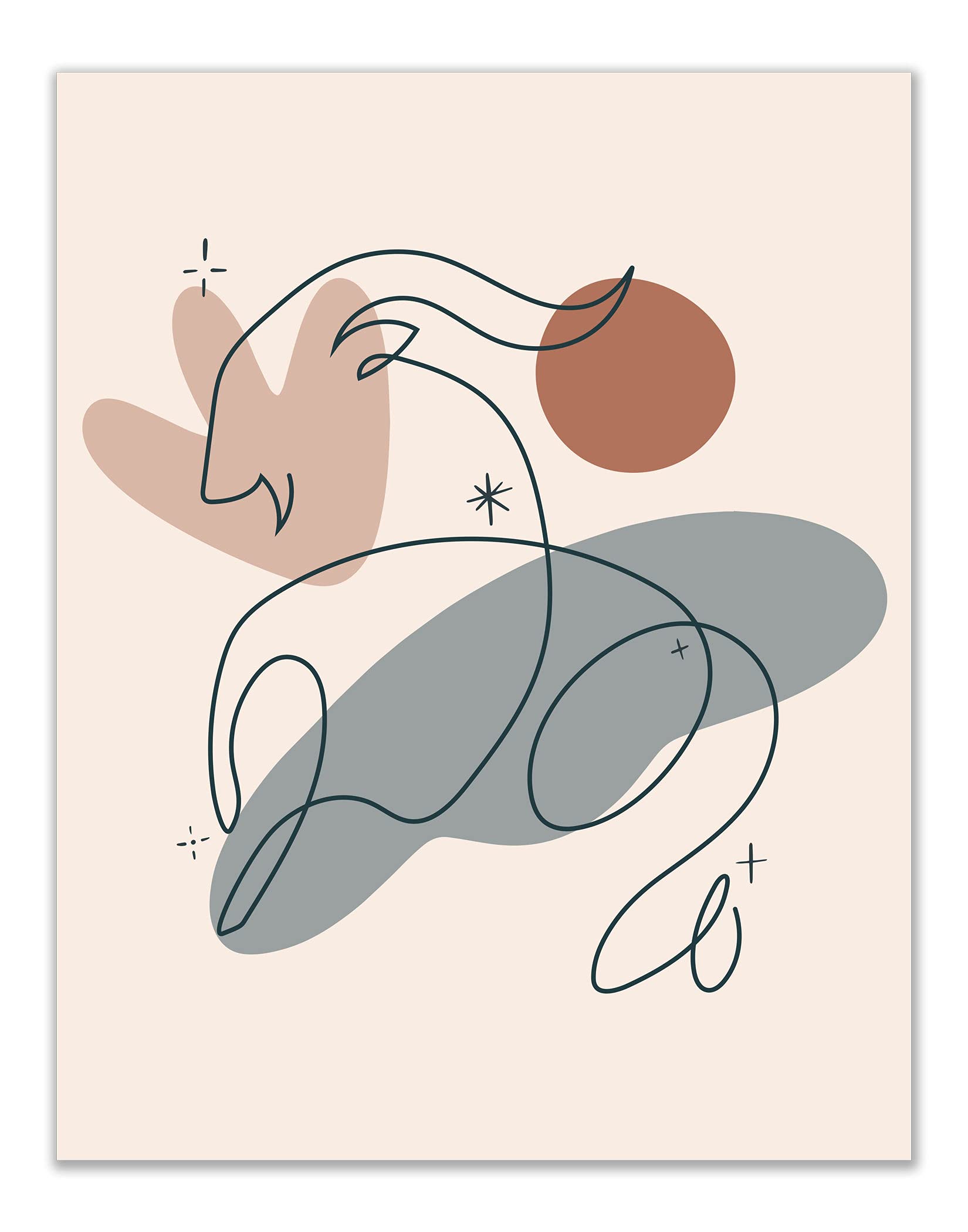 Contemporary Modern Capricorn Print - Set of 1 (11x14 Inches) Zodiac Astrology Constellation Horoscope Abstract Star Sign Wall Art Decor - The Goat - ...